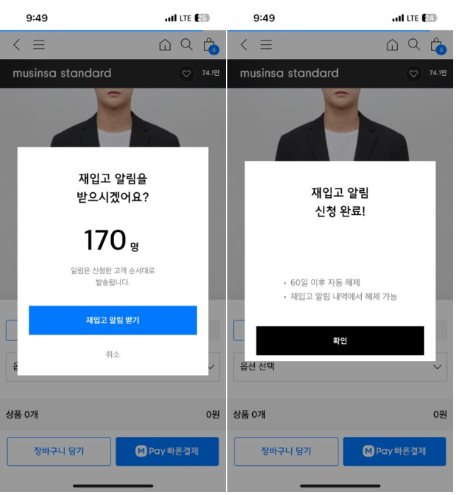 재입고 알림의 실사례 [무신사의 재입고 알림 IA]