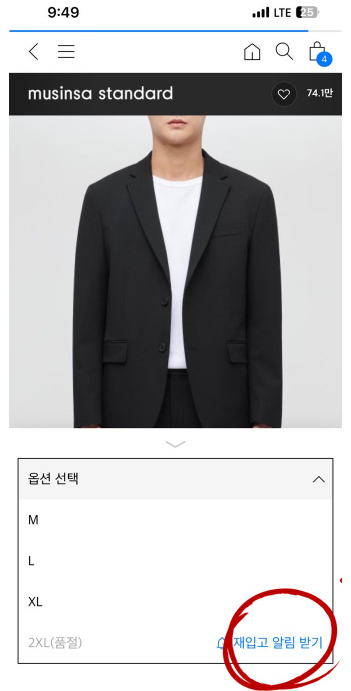 - 상품의 옵션에서 재입고 알림 받기를 텍스트 버튼으로 누를 수 있다.