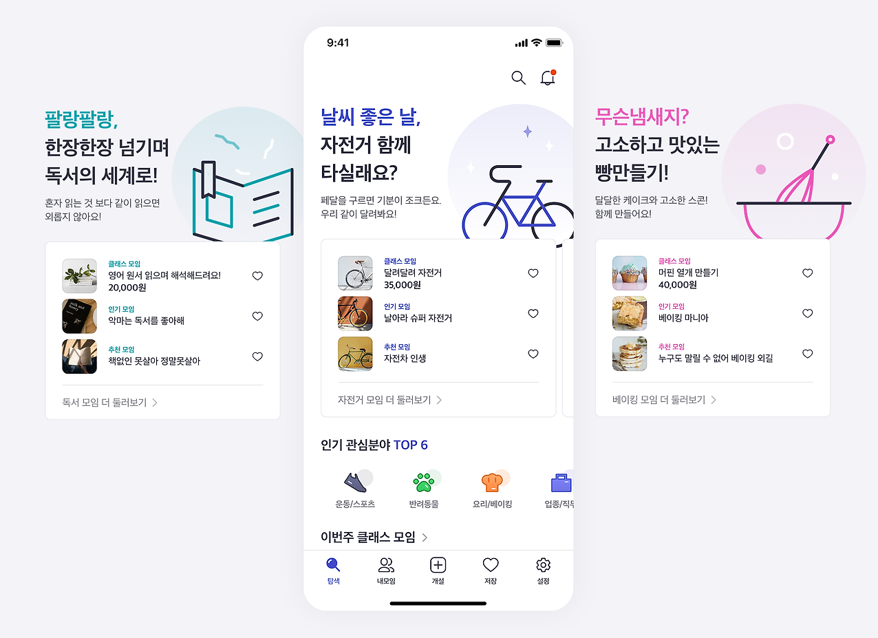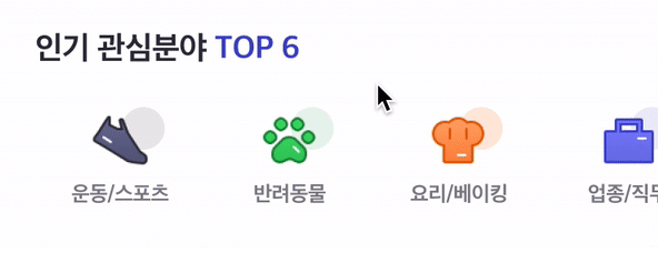 - 카테고리: 운동/스포츠, 요리/베이킹 등 분야가 눈에 띌 수 있도록