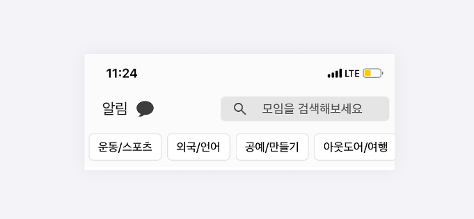 서치와 알림 버튼은 우측 상단에 배치해 화면 균형을 맞추고 선택하기 용이하도록 했다.