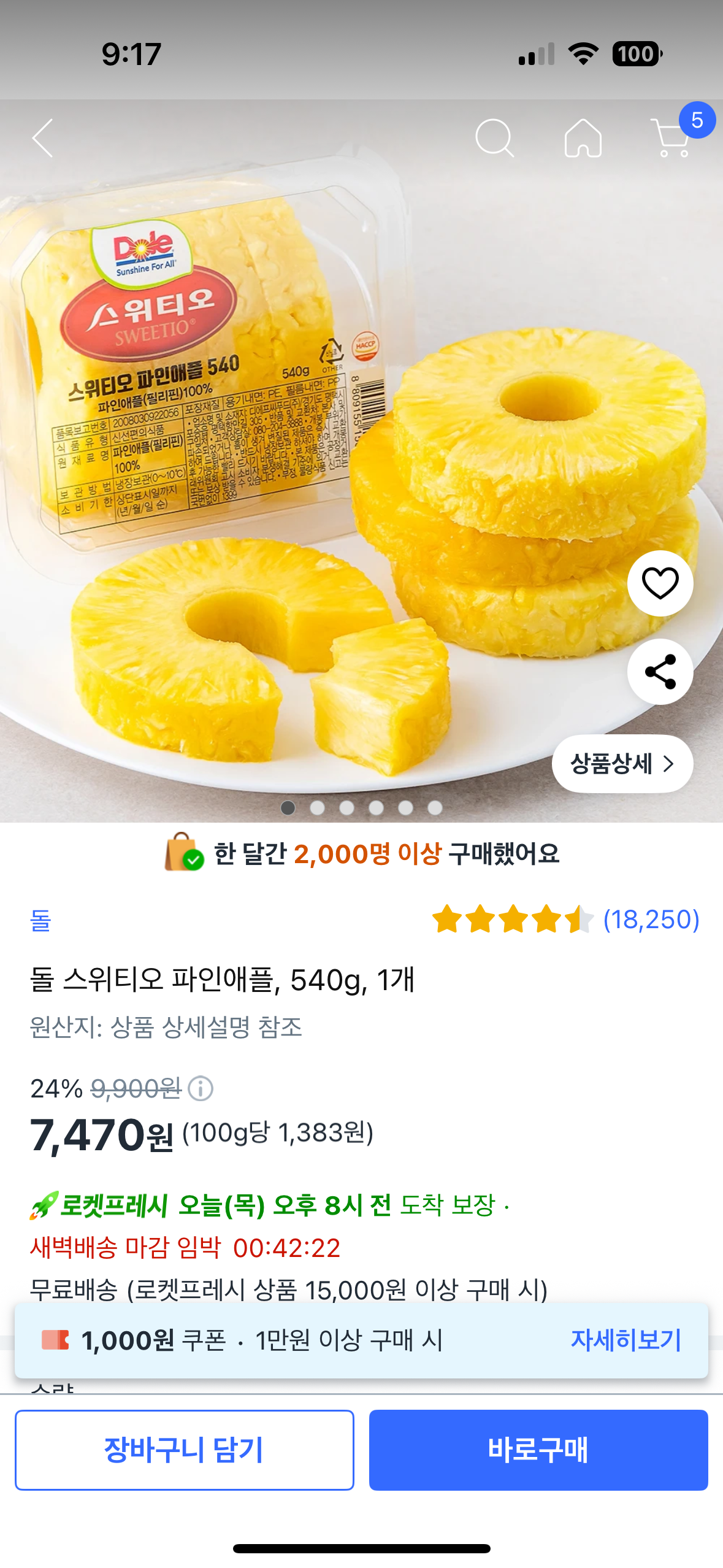 로켓배송, 새벽배송, 로켓프레시 등을 플랫폼의 강점으로 내세우는 쿠팡은 배송 마감 시간을 카운트다운하는 UI로 빠른 구매 전환을 유도하고 있었다. (예상대로) 쿠폰 정보도 놓치지 않고 하단 독 위에 띄워 저렴하고 빠르게 물건을 받아볼 수 있다는 것을 어필하고 있었다.