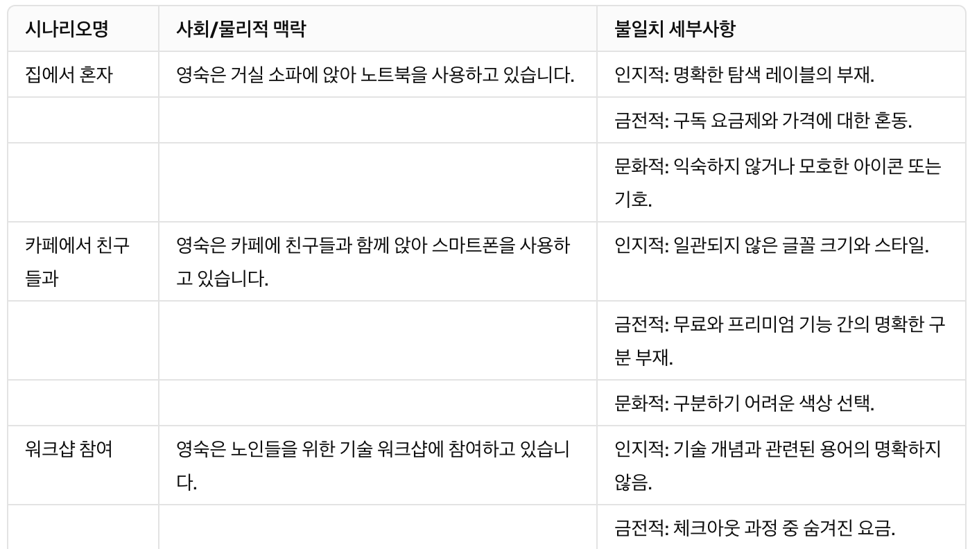 [프롬프트] 시니어 세대가 인공지능을 이용할 때 원치 않는 중단이 발생할 수 있는데, 이러한 경험을 방지하고 몰입을 유지하기 위해서는 어떤 것이 필요할까?